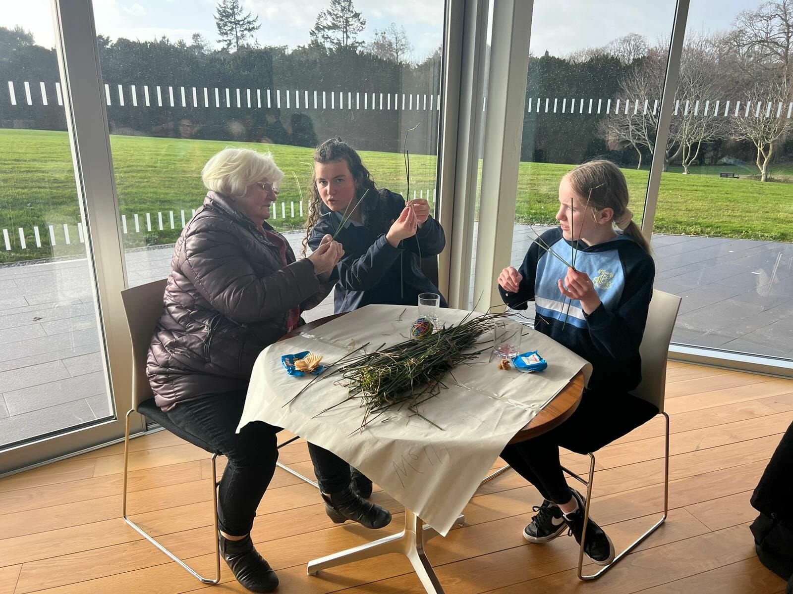 To this end, we were delighted to host a gathering to celebrate St Brigid here in the Centre this week. A group of students from St Mary’s GNS, Glasnevin joined with some of our friends from Ballymun and a few of the Glasnevin Holy Faith community to share stories and make St Brigid crosses. We had a lovely morning, with lots of conversation and fun, learning from each other how to make the crosses and honouring a woman who serves as a role model for each of us, regardless of our age. Brigid, Mary of the Gael pray for us. Beannachtaí Lá fhéile Bríghid oraibh go léir!